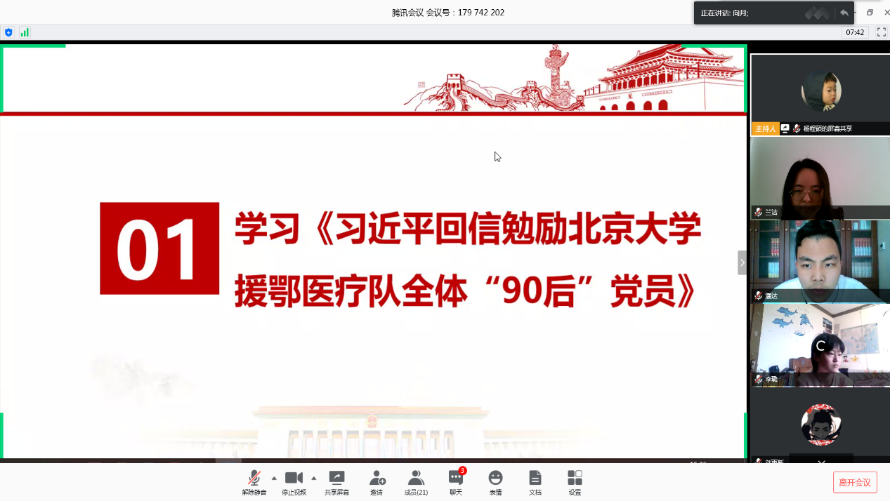2020-05-095月5号15:30,正妹av 本科制药工程党支部通过腾讯会议召开主题党日活动,会议内容为学习贯彻“习近平总书记重要回信精神”,加...