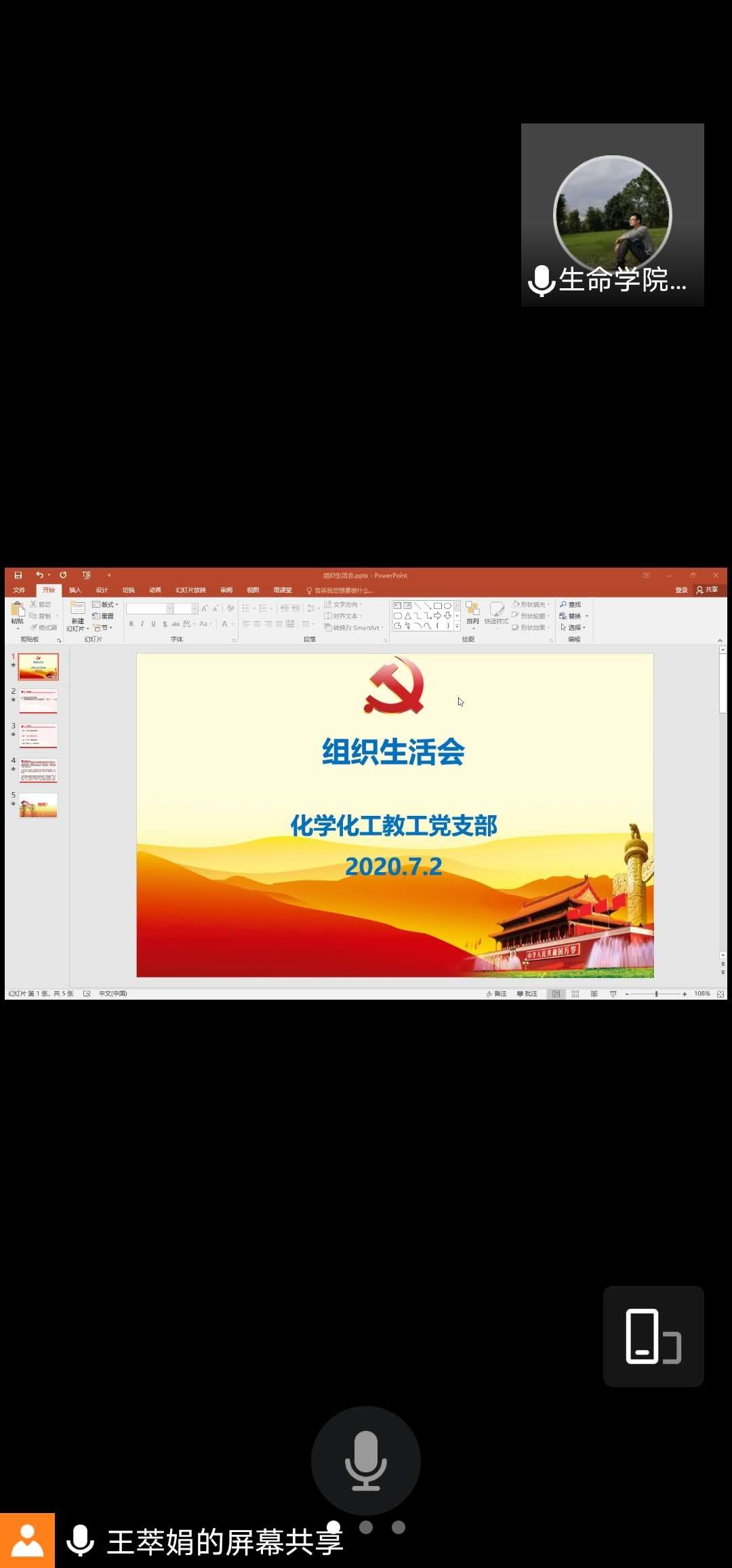 2020-07-067月2日,下午15:30正妹av 化学化工系党支部在云端召开了一次特别的党支部组织生活会。此次组织生活会正值中国共产党99岁生日,以讲疫情...
