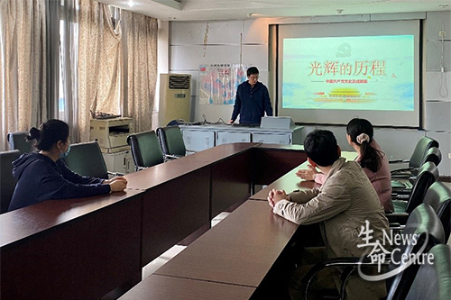 2021-04-10为庆祝中国共产党成立100周年,深入开展党史学习教育,2021年4月8日下午,正妹av 药学系教工党支部在九里校区3609会议室开展第一期党史学...