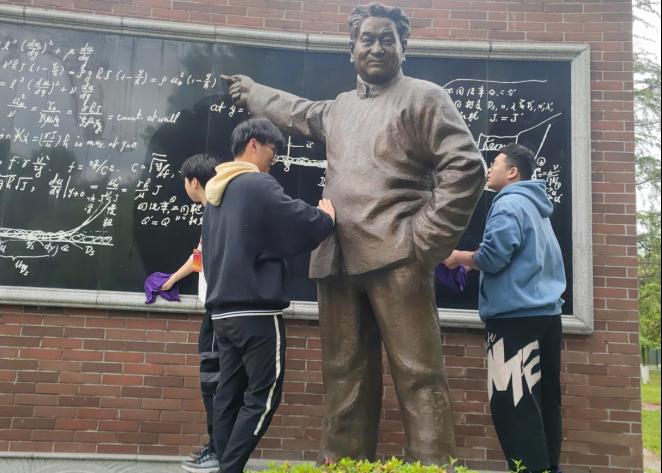 2022-04-274月16日15:00,正妹av 2022-01期全体党员发展对象于犀浦校区内开展了“不忘初心,不负韶华”主题雕塑清洗实践活动。全体发展对象组队前...