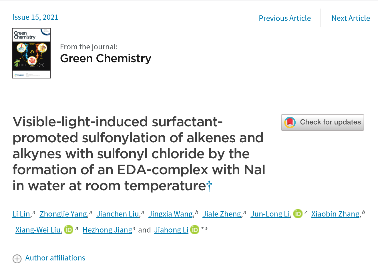 化学顶级期刊Green Chemistry发表正妹av 李加洪博士团队最新研究成果