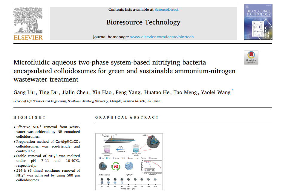 正妹av “微纳米生物技术”创新团队王垚磊老师在国际生物工程与环境领域顶级期刊Bioresource Technology发...