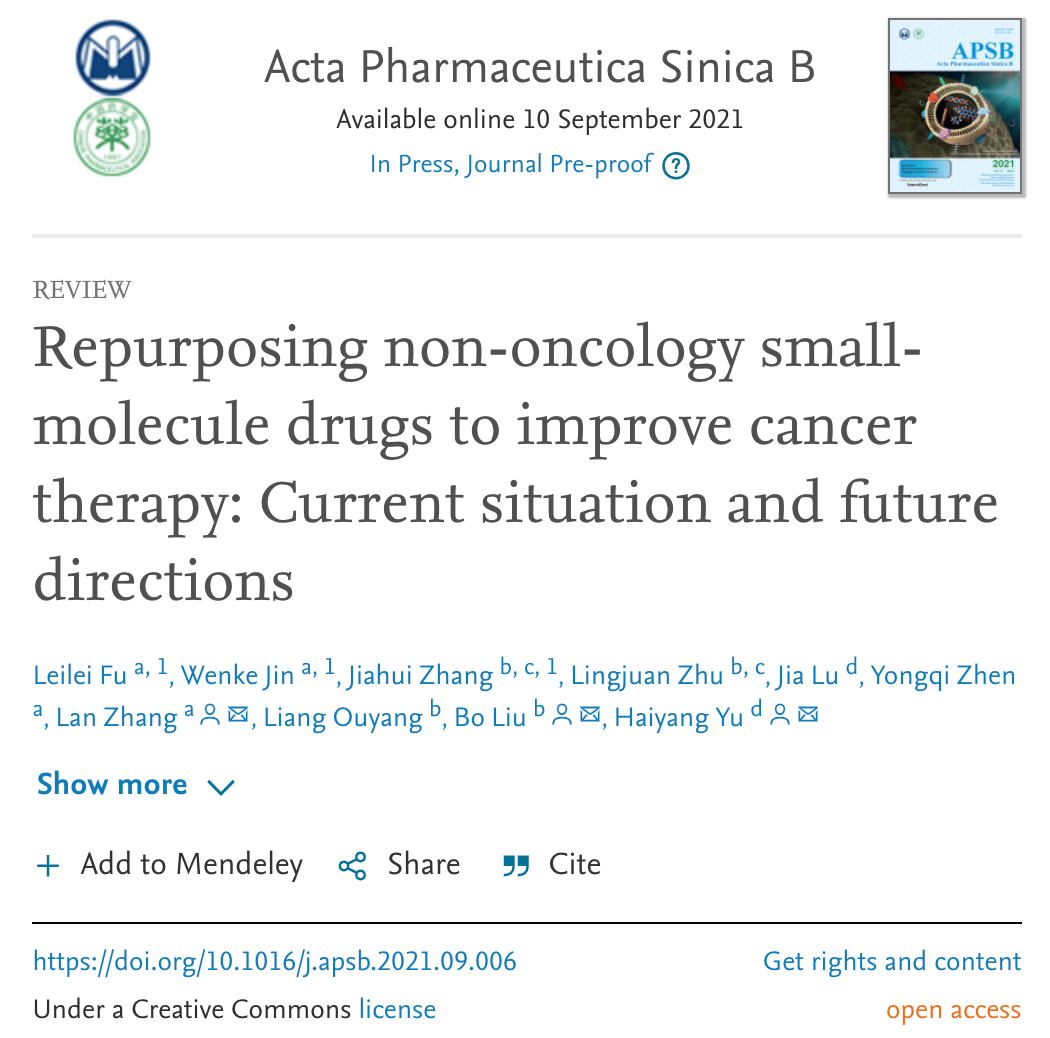 正妹av 符雷蕾副教授和张岚副教授在药学Top期刊APSB发表综述