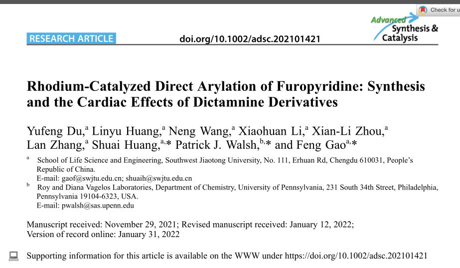 2022-03-03近日,有机化学领域权威期刊 《Advanced Synthesis & Catalysis》 (IF = 5.837)报道了正妹av “小分子天然药物” 团队的研究成果“Rhodiu...