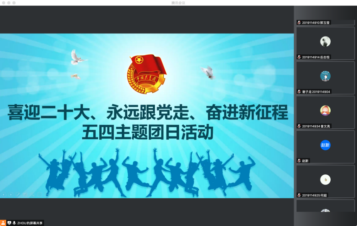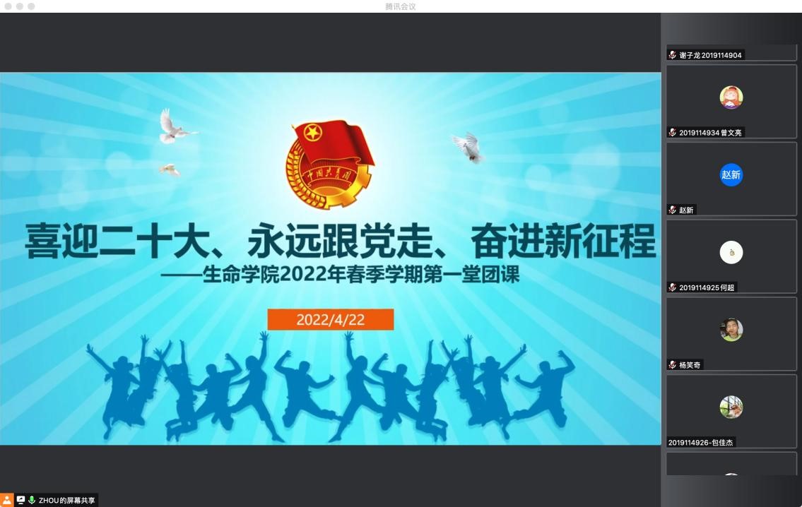 2022-05-04为迎接和学习宣传贯彻党的二十大、庆祝中国共青团成立100周年,2022年4月22日19:30,制药2019-02班团支部以“喜迎二十大、永远跟党走、奋...